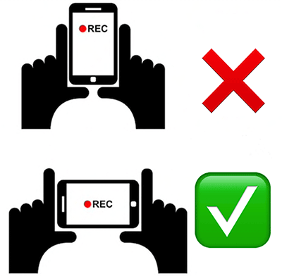 If using a cell phone to record, make sure you turn it in the Landscape position which is horizontal, not portrait which is vertical.